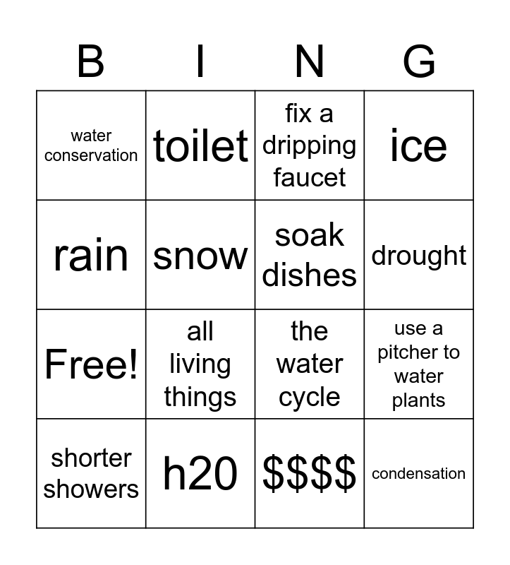 water conservation | H20 Bingo | Dehydration Bingo | Water Cycle | Water Cycle