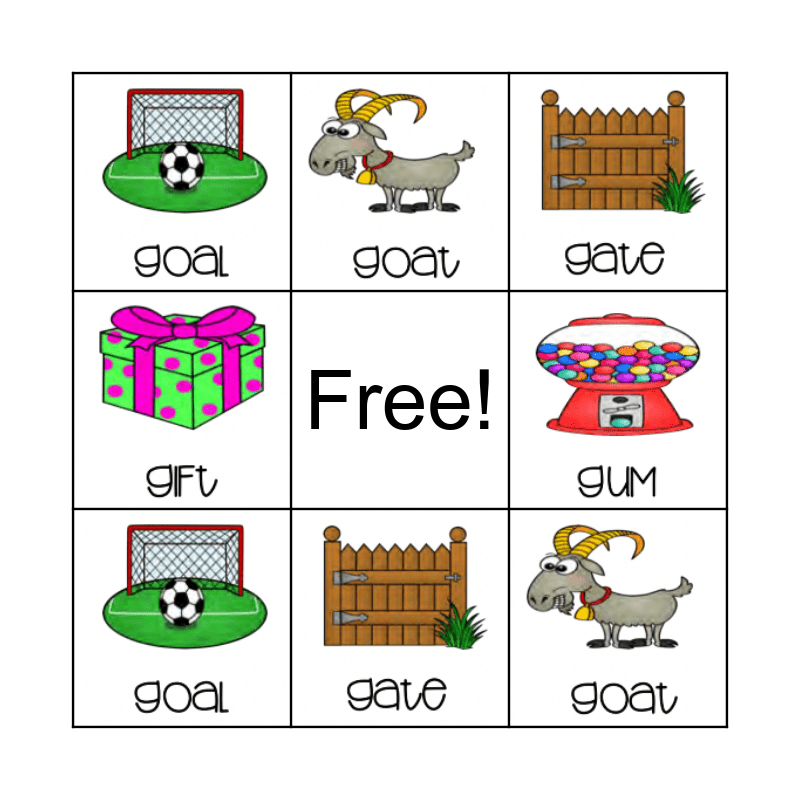 This bingo card has 8 images and a free space.