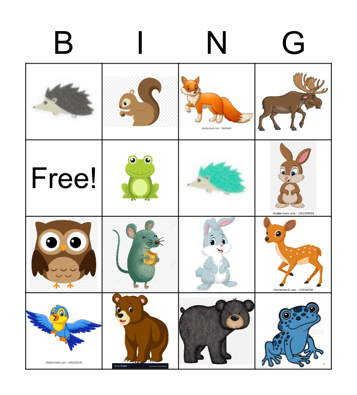 Woodland Animals Bingo Card