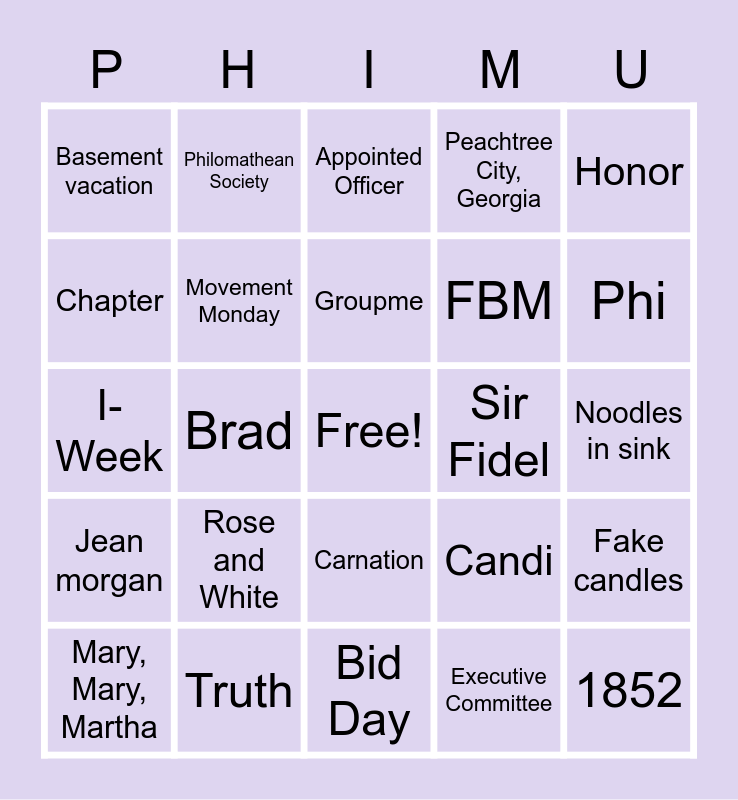 Bid Day Bingo! | Phi Retreat Bingo | Phi Mu Bingo | Sisterhood Bingo | Phi Mu Bingo!