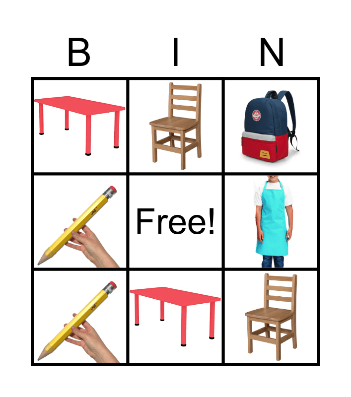 School Objects Bingo Card