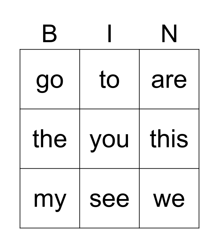 This bingo card has a free space and 11 words: is, see, we, my, to, are, this, was, the, go and like.