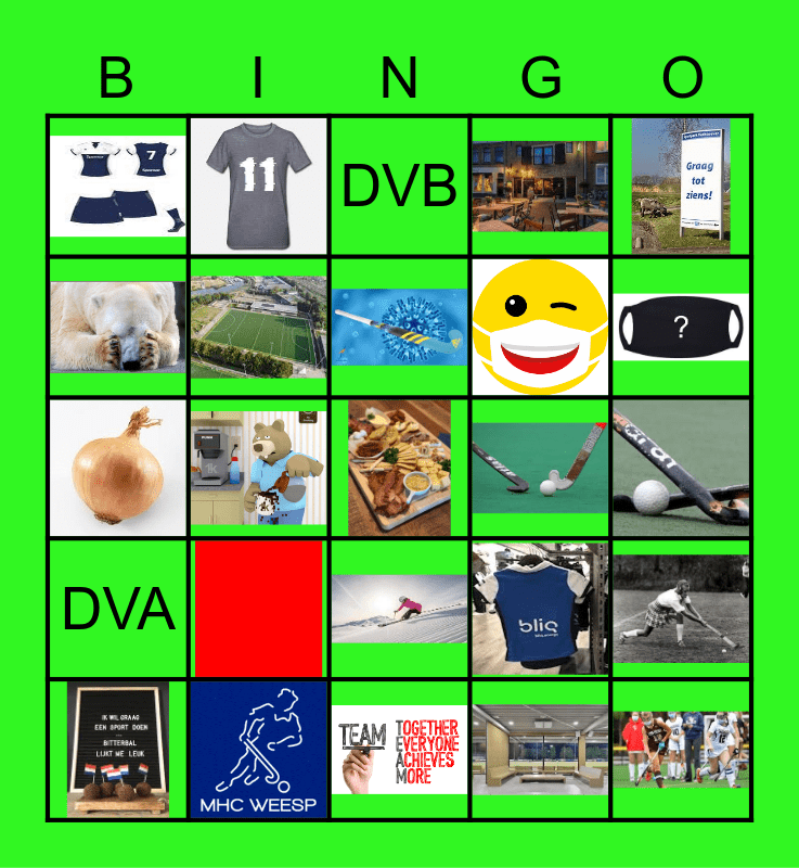 This bingo card has 27 images and 3 words: DVC, DVB and DVA.