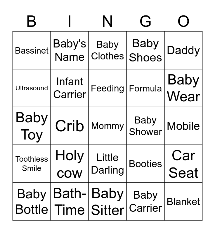 This bingo card has 45 words: Aarna's sibling, Mommy, Baby Bath, Baby Bottle, Baby Buggy, Baby Carrier, Baby Clothes, Baby Food, Daddy, Bath-Time, Baby Shoes, Baby Shower, Little Darling, Holy cow, Happy Family, Baby Sitter, Baby Swing, Baby Toy, Baby Walker, Baby Wear, Baby's Name, Basket, Bedding, Bassinet, Bottle, Mobile, Lullaby, Bibs, Booties, Toothless Smile, Cravings, Car Seat, Changing Table, Cloth Diaper, Cradle, Crib, Diapers, Diaper Bag, Blanket, Feeding, Ultrasound, Formula, High Chair, Infant Carrier and Stroller.