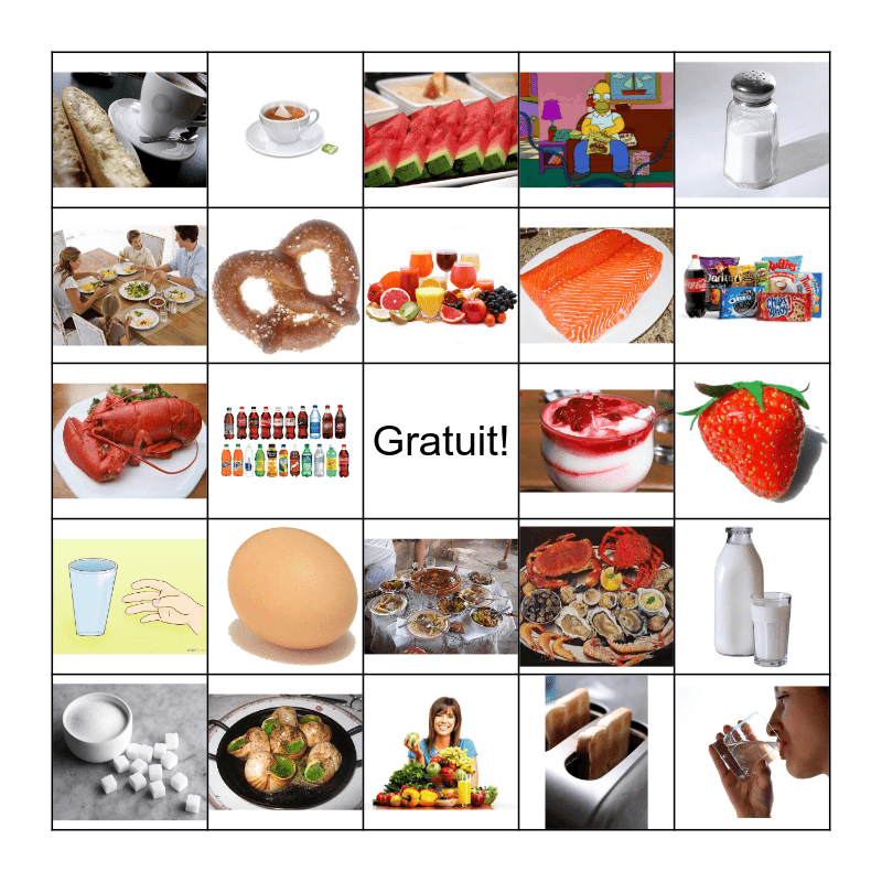 La nourriture et les boissons Bingo Card