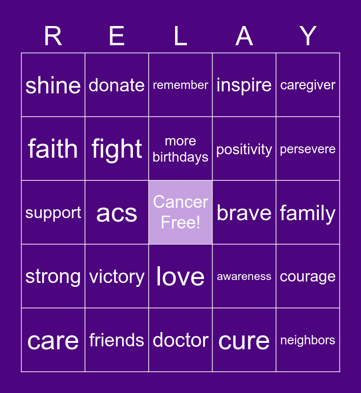 ACS Relay For Life Bingo | ACS Relay For Life Bingo | Types of Cancer | "CANCER" | "CANCER"