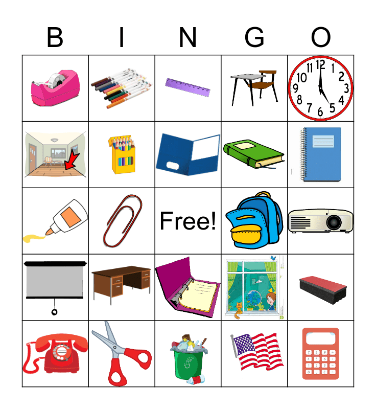 This bingo card has 24 images and a free space.