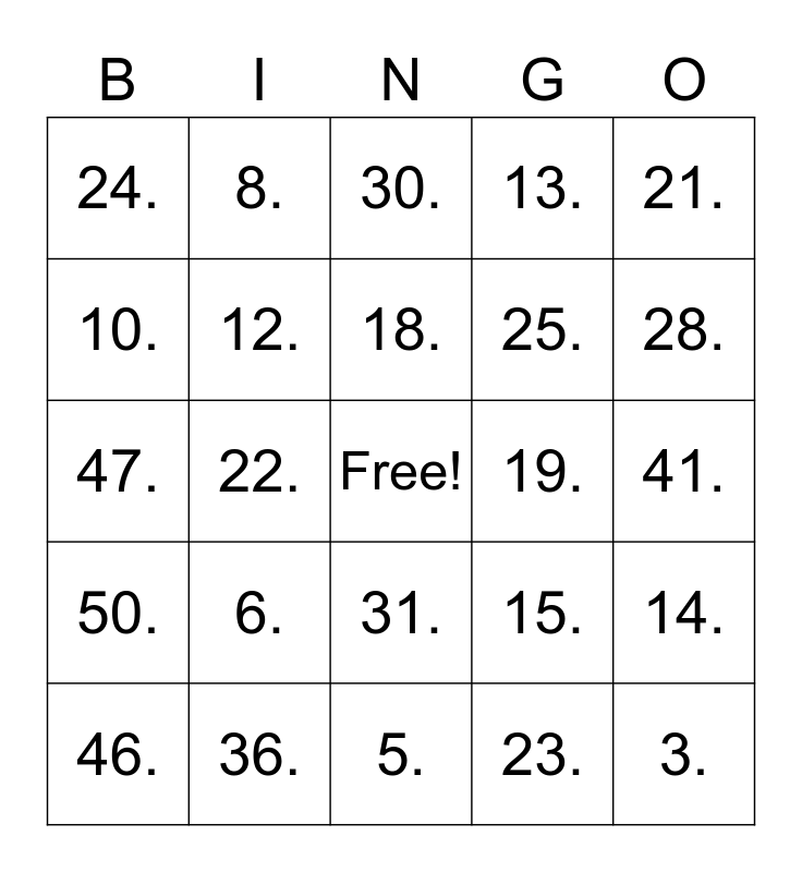 This bingo card has a free space and 50 words: 2., 3., 4., 5., 6., 7., 8., 9., 10., 11., 12., 13., 14., 15., 16., 17., 18., 19., 20., 21., 22., 23., 24., 25., 26., 27., 28., 29., 30., 31., 32., 33., 34., 35., 36., 37., 38., 39., 40., 41., 42., 43., 44., 45., 46., 47., 48., 49., 50. and 51..