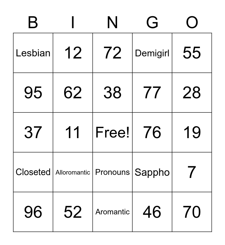 Palentine's Bingo | Gender and Attraction Identity Bingo | Palentine's Bingo | Queer Bingo!! | Untitled
