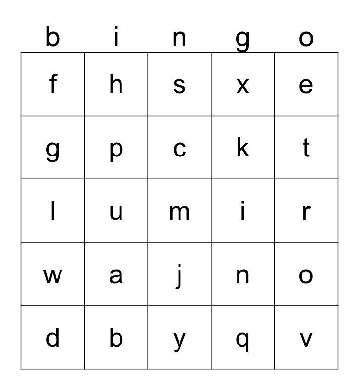 Lower case abc Bingo  Bingo Card