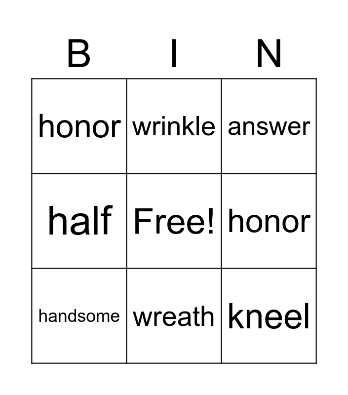 ⚠ This card has duplicate items: wreath (2), honor (2), wrinkle (2), half (2), kneel (2), handsome (2)