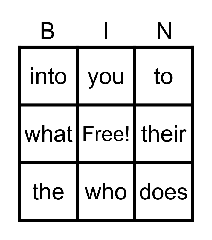 This bingo card has a free space and 21 words: of, do, you, are, your, the, into, to, said, who, color, what, from, friend, their, there, come, some, does, goes and been.