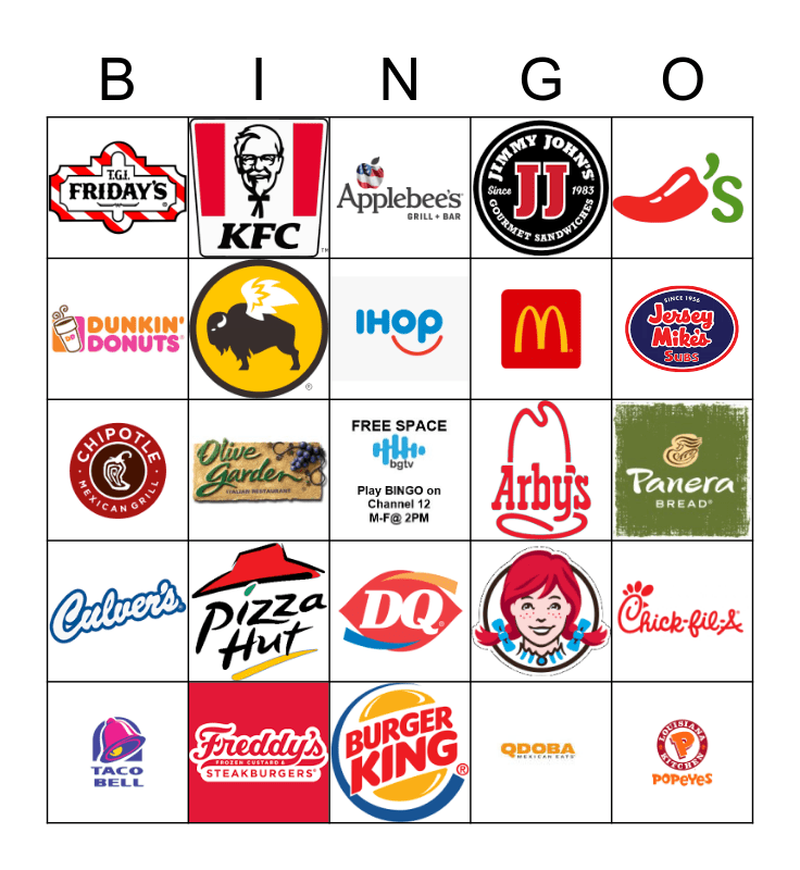 Restaurants Bingo Card
