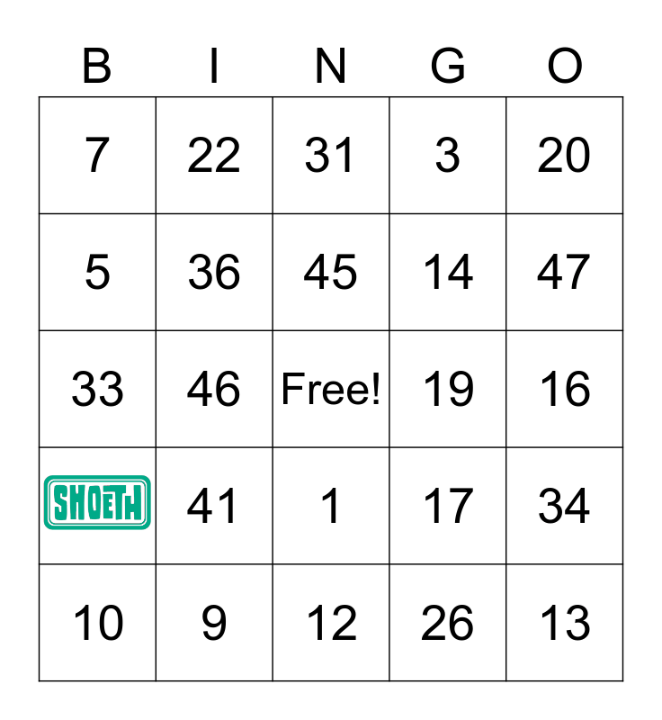 This bingo card has 4 images, a free space and 50 words: 1, 2, 3, 4, 5, 6, 7, 8, 9, 10, 11, 12, 13, 14, 15, 16, 17, 18, 19, 20, 21, 22, 23, 24, 25, 26, 27, 28, 29, 30, 31, 32, 33, 34, 35, 36, 37, 38, 39, 40, 41, 42, 43, 44, 45, 46, 47, 48, 49 and 50.