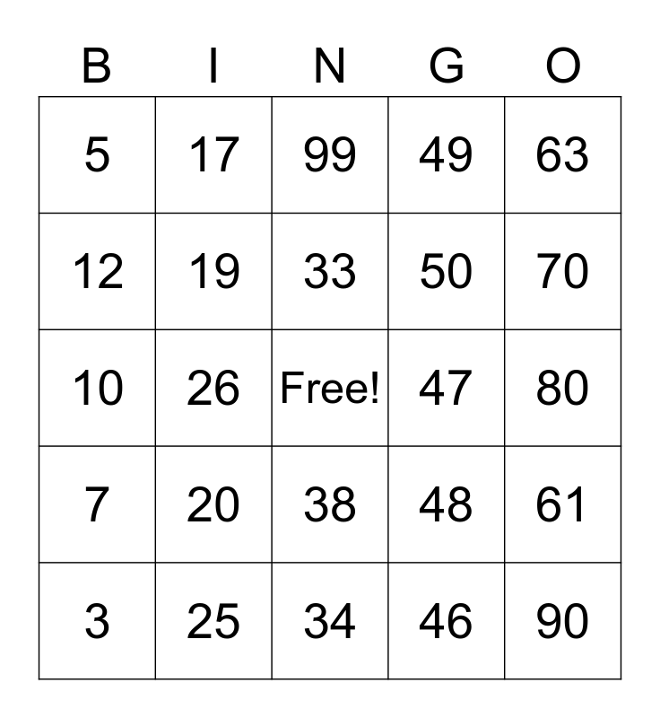This bingo card has a free space and 66 words: 1, 16, 31, 46, 61, 2, 17, 32, 47, 62, 3, 18, 48, 63, 4, 19, 33, 49, 64, 5, 20, 34, 50, 65, 6, 21, 35, 66, 7, 36, 80, 8, 9, 24, 38, 54, 69, 10, 25, 55, 70, 11, 26, 40, 56, 144, 12, 27, 41, 57, 72, 13, 28, 42, 84, 90, 14, 81, 99, 110, 15, 30, 121, 60, 75 and 45.