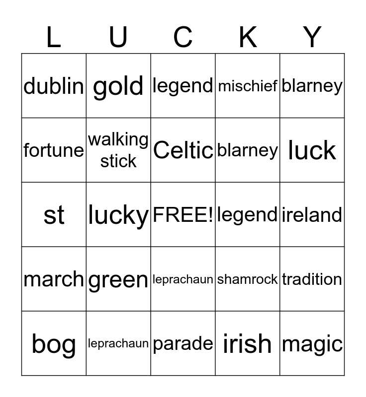 ⚠ This card has duplicate items: leprachaun (2), blarney (2), legend (2)