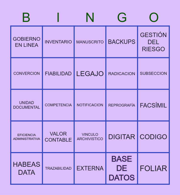 BINGO (Acuerdo 027 Del 2006) | CONCEPTOS | BINGO ARCHIVISTICO | Conceptual Bingo | Conceptual Bingo