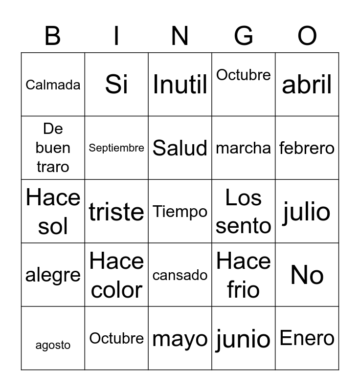 El Tiempo/Los Dias/Los Meses | El tiempo BINGO | El tiempo | Las Estaciones y ¿Qué tiempo hace? | Unit 1 review Bingo
