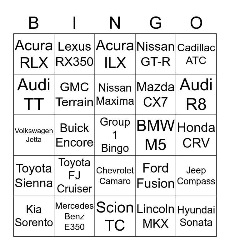 Car Bingo | Group 1 Bingo | Car Bingo | Group 1 Bingo | Group 1 Bingo