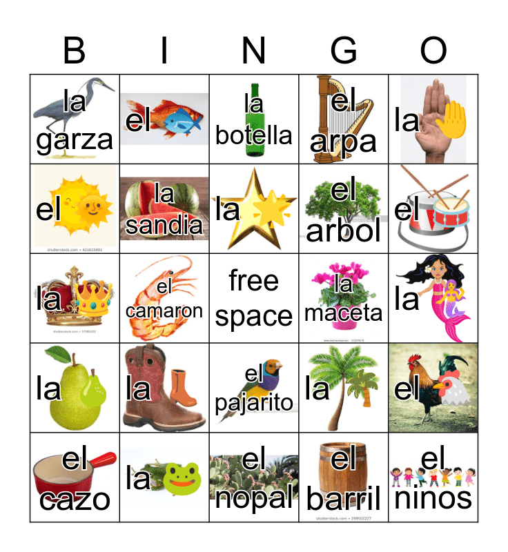 This bingo card has 44 images, a free space and 44 words: la π, el ninos, el π¦, el cazo, la bandera, el barril, la botella, la πͺ, la π€, la πΈ, el arpa, la maceta, el pajarito, la π’, el valiente, el nopal, el melon, la π, el diablito, el π₯, el π, el gorrito, el corazon, la garza, la dama, la π§ββοΈ, la π, el musico, la π΄, la π, el π², el π, la πΉ, el alacran, el camaron, la π, el soldado, la aranya, la π, el π, el arbol, el βοΈ, la sandia and el π.