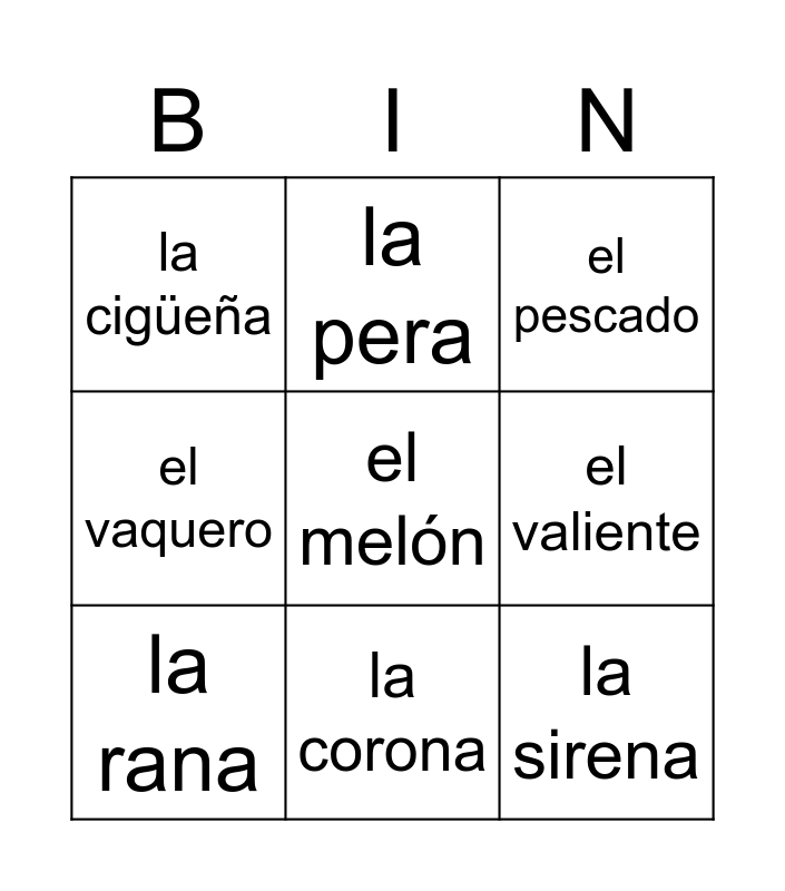 This bingo card has 31 words: la catrina, el sombrero, la guitarra, la bandera, la cigüeña, el pescado, la rana, la botella, la escalera, el barril, la bota, el corazón, el catrín, el cotorro, la dama, el diablo, el gallo, el gorrito, la luna, la manzana, el melón, el pájaro, el paraguas, la pera, la sirena, el valiente, el vaquero, la estrella, la araña, la corona and el sol.