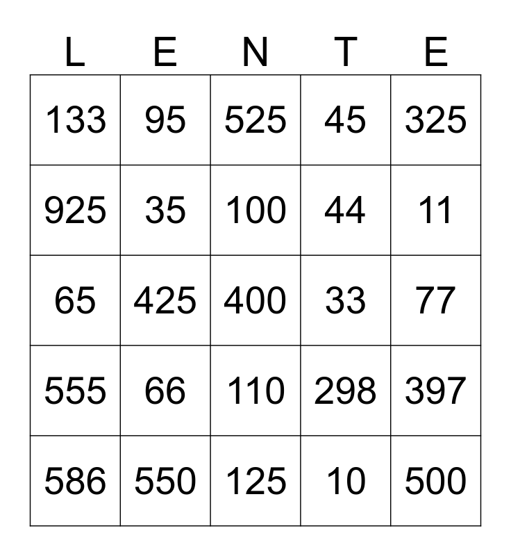 This bingo card has a free space and 96 words: 10, 1, 25, 33, 40, 298, 88, 77, 1000, 75, 842, 250, 99, 11, 931, 925, 100, 133, 99, 450, 110, 586, 325, 100, 110, 125, 150, 133, 200, 220, 225, 298, 300, 330, 325, 350, 397, 400, 440, 425, 450, 586, 500, 550, 555, 525, 550, 575, 600, 625, 650, 660, 664, 700, 725, 750, 753, 770, 800, 825, 842, 850, 880, 900, 925, 931, 950, 990, 1000, 10, 11, 15, 20, 22, 25, 30, 33, 35, 40, 44, 45, 50, 55, 56, 60, 65, 66, 70, 75, 77, 80, 85, 88, 90, 95 and 99.