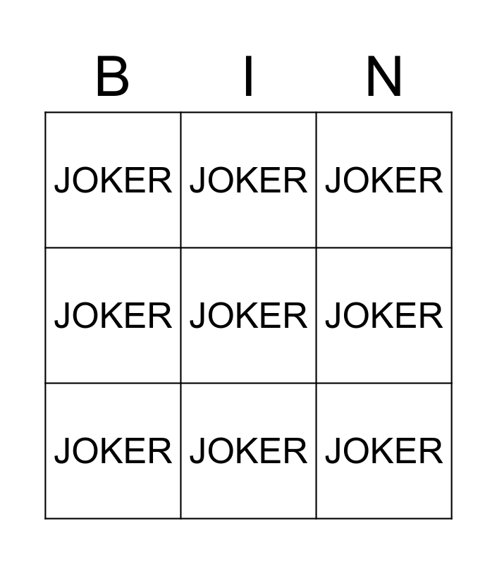 This bingo card has a free space and 8 words: JOKER, JOKER, JOKER, JOKER, JOKER, JOKER, JOKER and JOKER.
