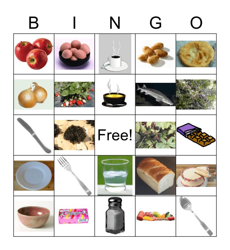 This bingo card has 24 images and a free space.