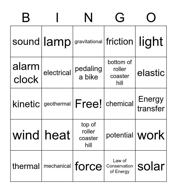 Forces and Motion Review | Energy Bingo | Energy | Energy | Chapter 4 Bingo Review