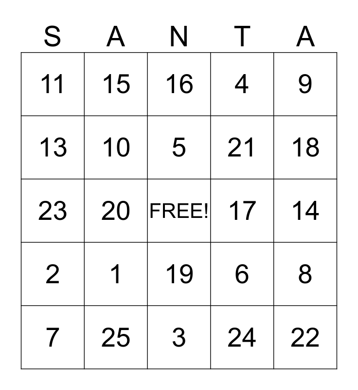 This bingo card has a free space and 25 words: 1, 3, 5, 7, 9, 11, 13, 15, 17, 19, 21, 23, 6, 8, 10, 12, 14, 16, 18, 20, 22, 25, 2, 4 and 24.