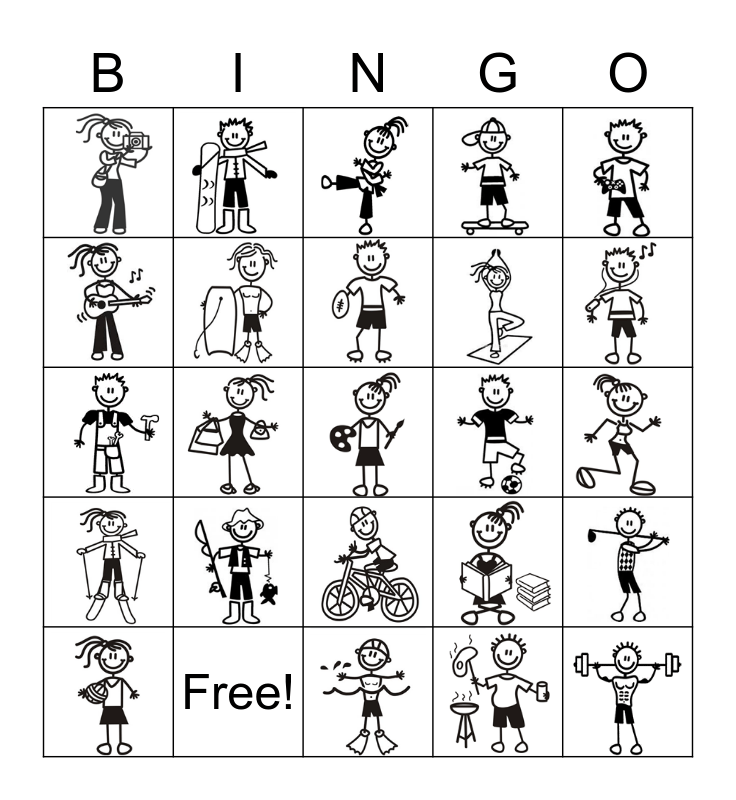 Interests and Hobbies Bingo Card