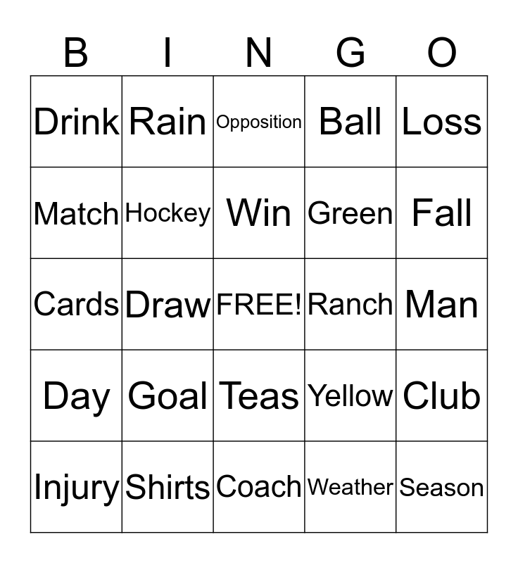 This bingo card has a free space and 37 words: Chapeltown, Ladies, Men, Hockey, Club, Goal, Win, Lose, Loss, Score, Draw, Ball, Season, Man, Match, Day, Captain, Opposition, Teas, Ranch, Drink, Fall, Injury, Coach, Supporters, Weather, Rain, Snow, Conditions, Training, Shin Pads, Shirts, Cards, Red, Yellow, Green and Umpire.