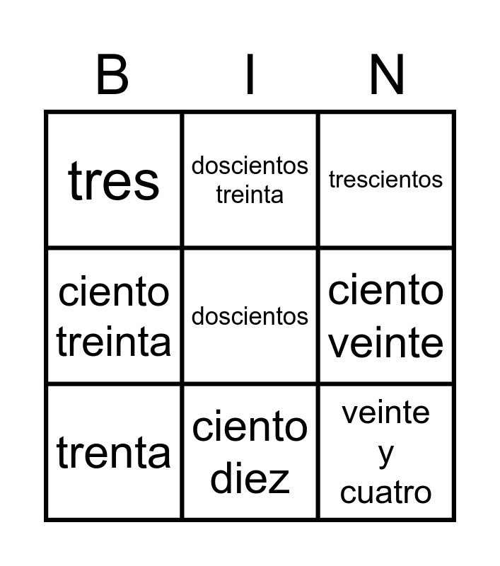 This bingo card has 51 words: dos, once, veinte y uno, trenta, Gratis, cuarenta, tres, doce, veinte y cuatro, cien, ciento diez, ciento veinte, ciento treinta, ciento cuarenta, ciento cincuenta, ciento sesenta, ciento setenta, ciento ochenta, ciento noventa, doscientos, doscientos diez, doscientos veinte, doscientos treinta, doscientos cuarenta, doscientos cincuenta, doscientos sesenta, doscientos setenta, doscientos ochenta, doscientos noventa, trescientos, trescientos diez, trescientos veinte, trescientos treinta, trescientos cuarenta, trescientos cincuenta, trescientos sesenta, trescientos setenta, trescientos ochenta, trescientos noventa, cuatrocientos, cuatrocientos diez, cuatrocientos veinte, cuatrocientos treinta, cuatrocientos cuarenta, cuatrocientos cincuenta, cuatrocientos sensenta, cuatrocientos setenta, cuatrocientos ochenta, cuatrocientos noventa, quinientos and quinientos diez.