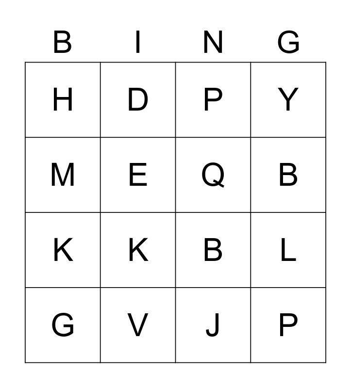 This bingo card has 42 words: A, B, C, D, E, F, G, H, P, I, J, K, L, M, N, O, A, B, C, D, E, F, G, H, I, J, K, L, M, N, O, P, Q, R, S, T, U, V, W, X, Y and Z.
