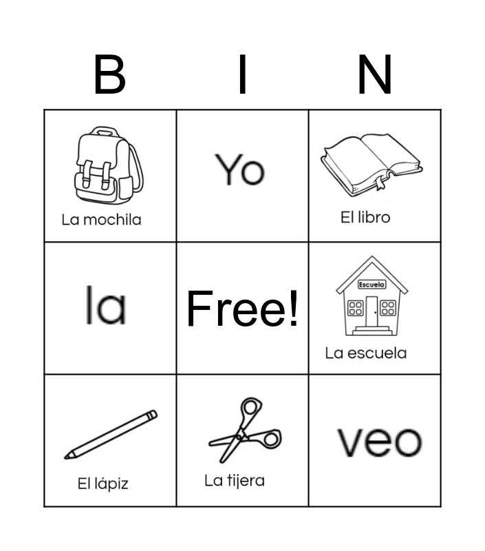 La escuela Bingo Card