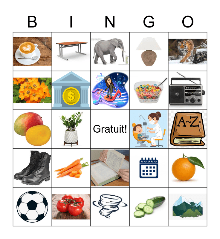 This bingo card has 24 images and a free space.