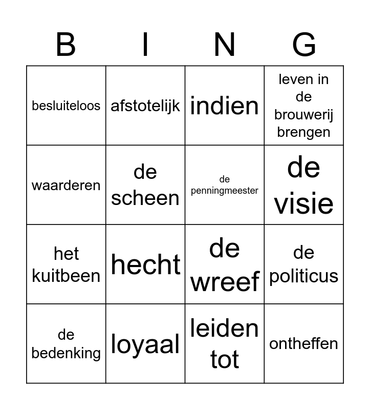 Woordenschat Bingo Card