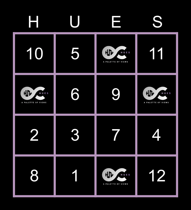 This bingo card has 4 images and 12 words: 1, 4, 10, 2, 5, 7, 6, 8, 11, 3, 9 and 12.