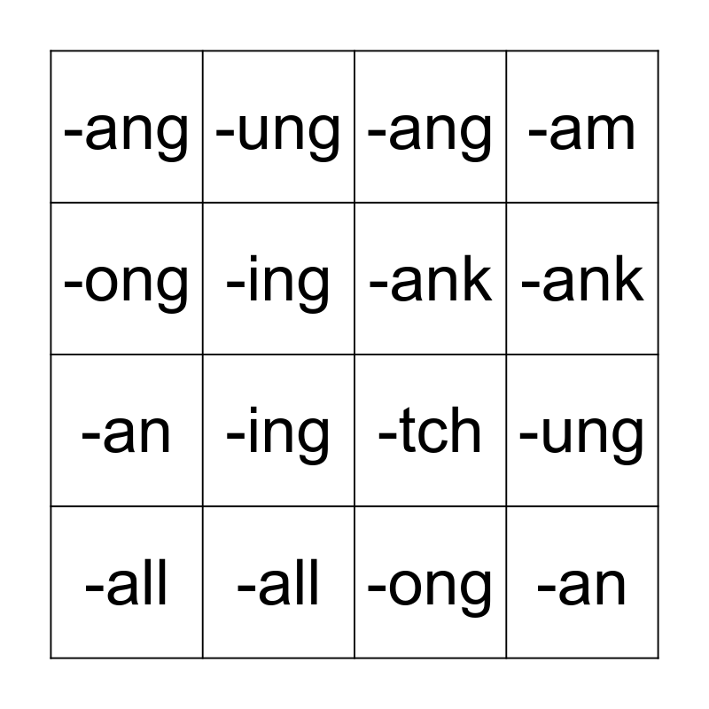 ⚠ This card has duplicate items: -ink (2), -onk (2), -ank (2), -unk (2), -ong (2), -ang (2), -ing (2), -ung (2), -all (2), -am (2), -an (2), -tch (2)
