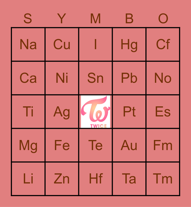 This bingo card has a free space and 24 words: Li, Fe, Sn, Ta, Cf, Na, Cu, I, Pt, Es, Ti, Ni, Au, Fm, Ca, Zn, Hf, Hg, No, Mg, Ag, Te, Pb and Tm.