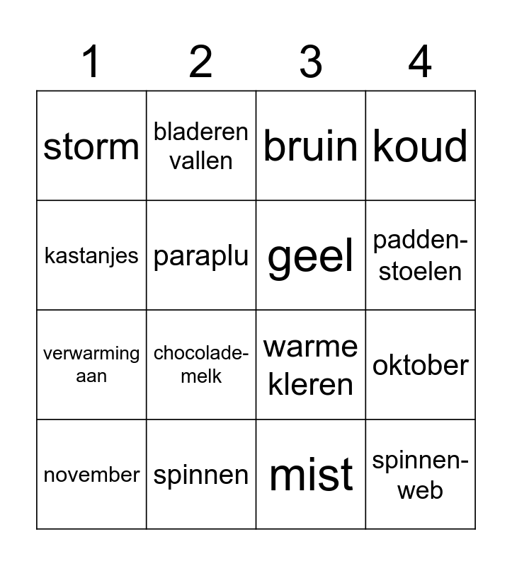 Herfst | Kaarten Bingo | HERFST (Groep 4- thema 3 en R-3groep) | LIEDJES BINGO DAG & TIJD | mijn huis (Borre en de nachtzwarte kat)