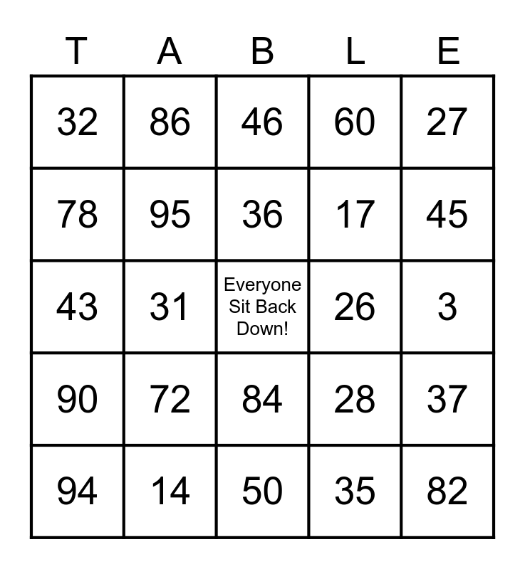 Lunch Table Bingo Card