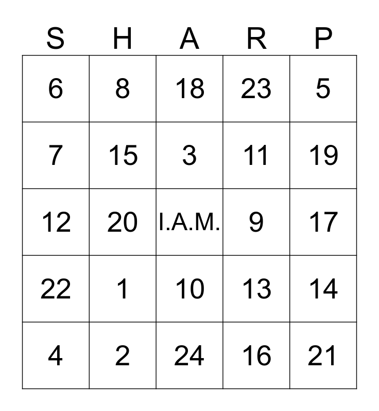 This bingo card has a free space and 24 words: 1, 2, 3, 4, 5, 6, 7, 8, 9, 10, 11, 12, 13, 14, 15, 16, 17, 18, 19, 20, 21, 22, 23 and 24.