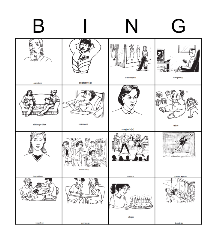 This bingo card has 19 images and 1 words: ¡claro que si!.