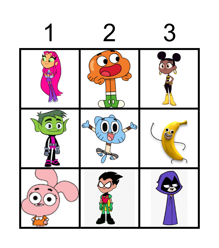 This bingo card has 9 images.
