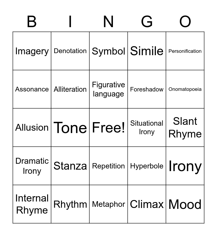 Literary Terms Set 5 Review | Poetry Bingo | poetic devices | Poetry Bingo | Figurative Language