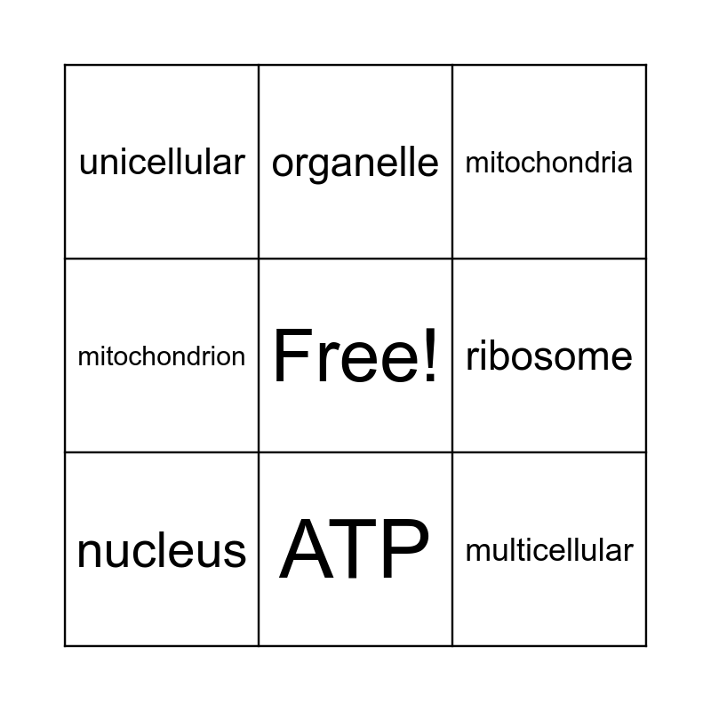 Suzuki Book 2 Bingo | Types of Cells | Specialized Cell Bingo | Organelles | Organelles