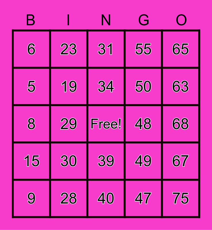 This bingo card has a free space and 75 words: 1, 16, 31, 46, 61, 2, 17, 32, 47, 62, 3, 18, 48, 63, 4, 19, 33, 49, 64, 5, 20, 34, 50, 65, 6, 21, 35, 51, 66, 7, 22, 36, 52, 67, 8, 23, 37, 53, 68, 9, 24, 38, 54, 69, 10, 25, 39, 55, 70, 11, 26, 40, 56, 71, 12, 27, 41, 57, 72, 13, 28, 42, 58, 73, 14, 29, 43, 59, 74, 15, 30, 44, 60, 75 and 45.