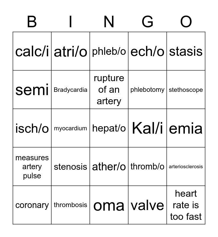 Cardiovascular Medical Terminology | Cardiology | Med Term Ch. 6 Cardiovascular System | Cardiovascular Bingo | Circulatory System Review