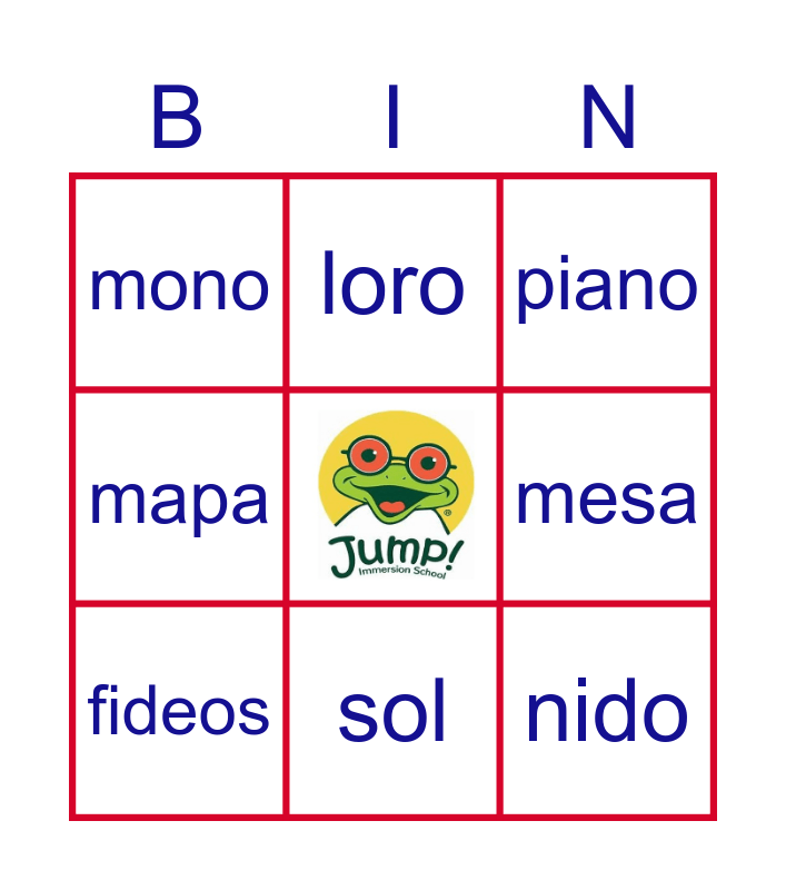 This bingo card has a free space and 13 words: dado, dedos, fideos, loro, mapa, nido, pato, sofá, sol, mono, mesa, piano and luna.